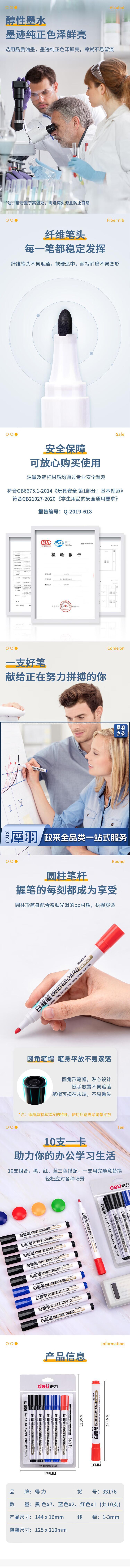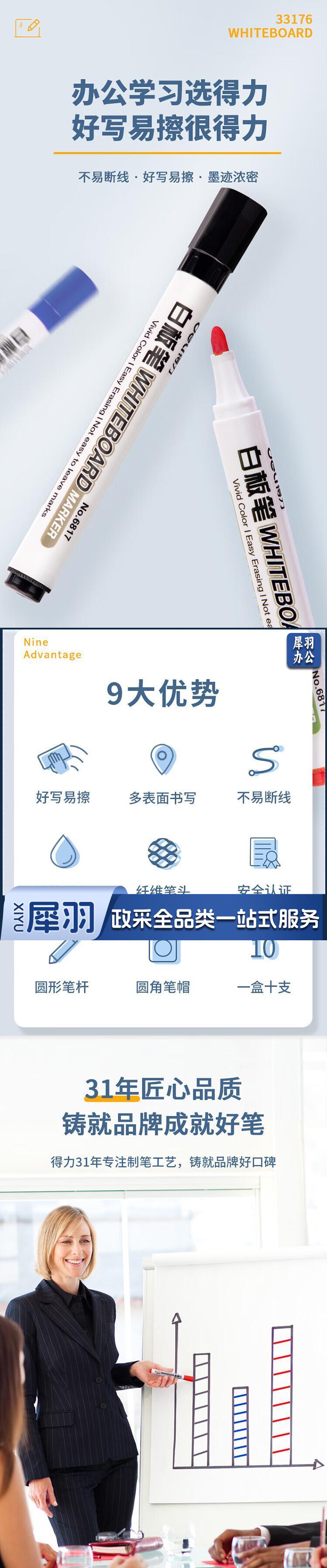 得力(deli) 白板笔/马克笔套装 可擦易擦书写顺滑 办公文具会议教学 7黑2蓝1红混色 10支/盒 33176