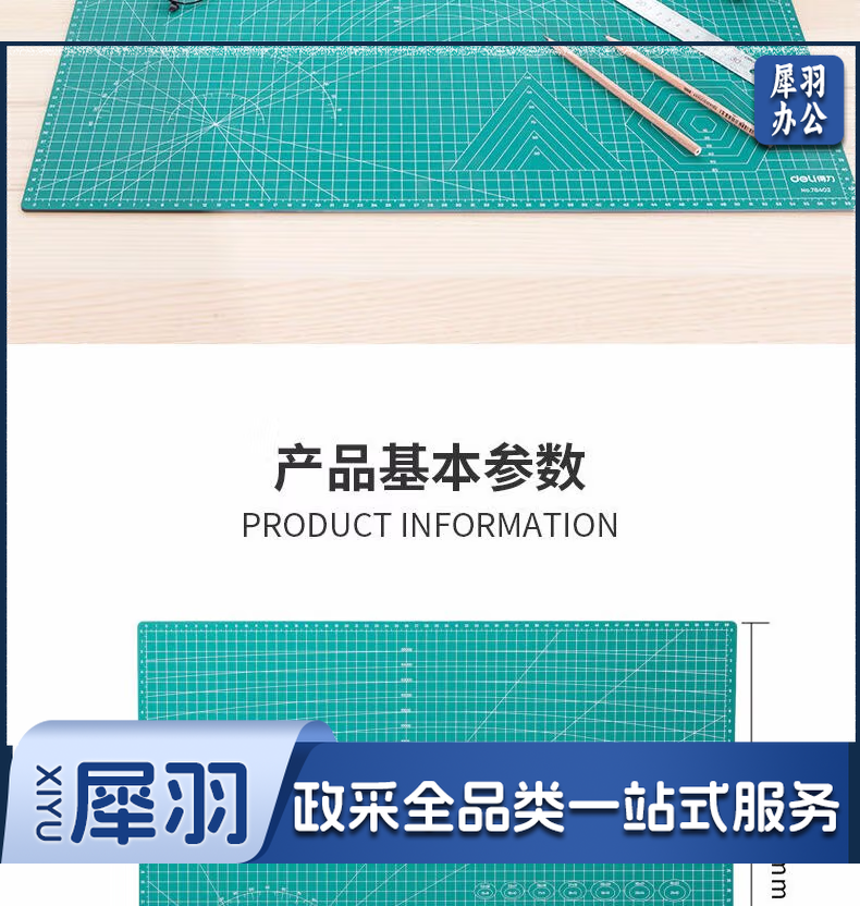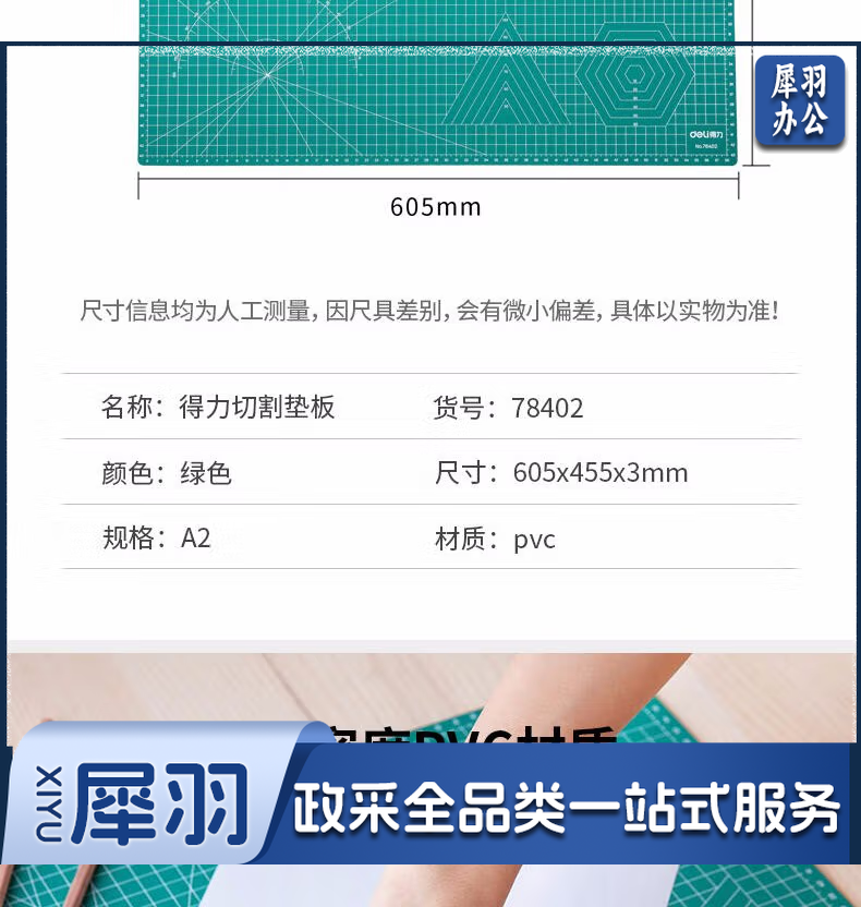 得力(deli)A2耐用PVC切割垫板桌垫 *绿色*1块 78402 TJHX03210843413548