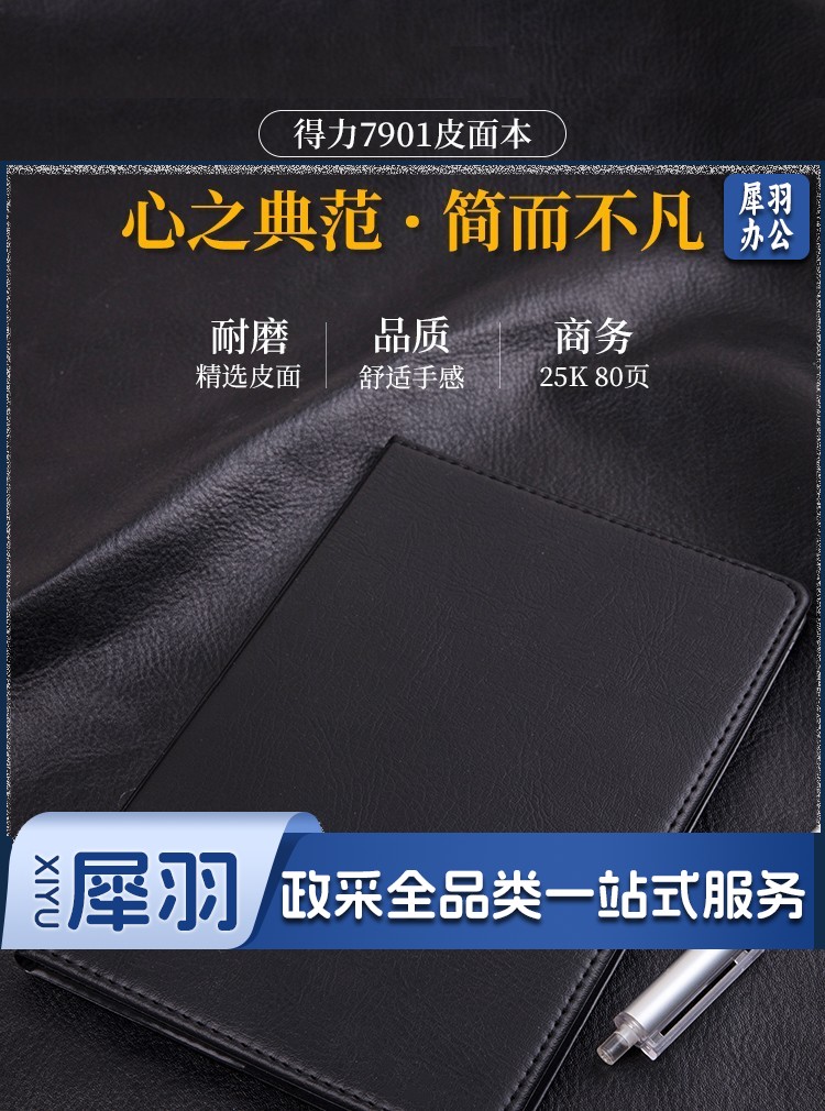 得力7901皮面笔记本(黑)-80页-25K(本)