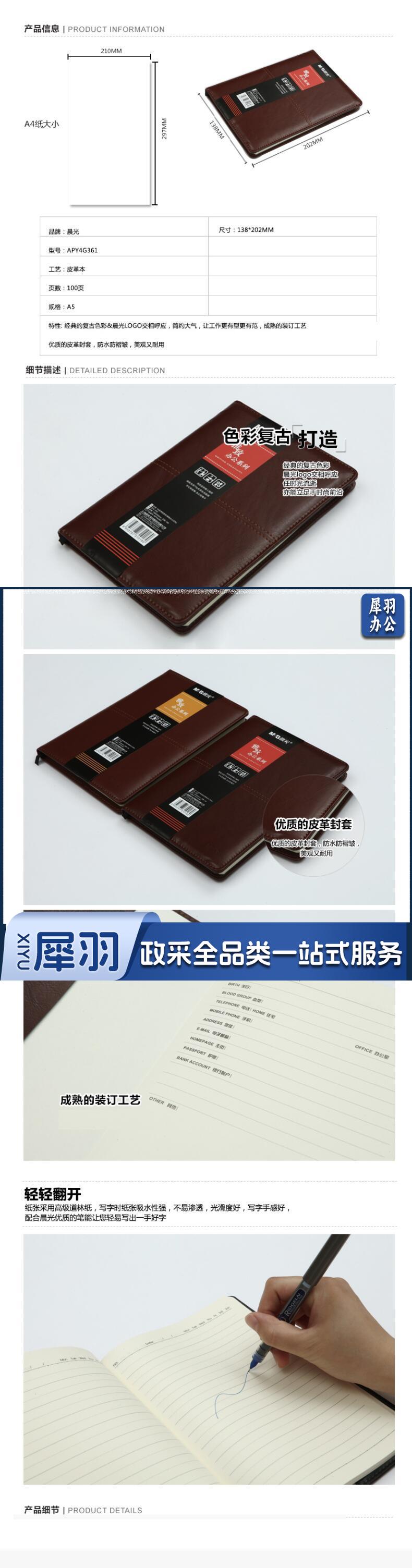 晨光(M&G) APY4G361 雅致办公仿皮本 A5 (黑色、棕色) 96页/本 (颜色随机)