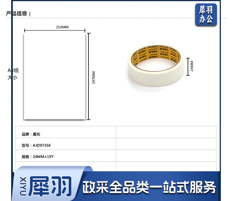 晨光(M&G)AJD97356 文具美纹纸胶带 装修遮蔽纸 无痕纸贴膜纸24mm*15y(13.71m/卷) 办公用品 单卷装