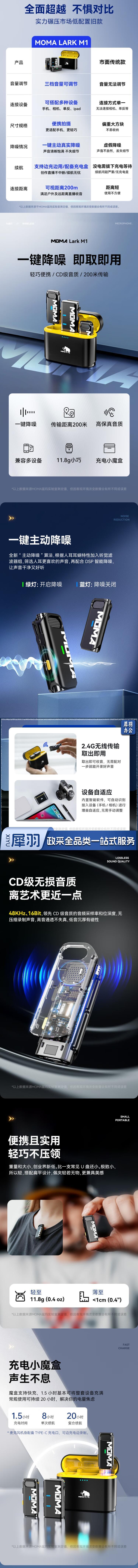 猛玛(MOMA)无线麦克风领夹麦克风猛犸larkm1一拖二小蜜蜂vlog采访户外直播手机收音麦 LARK M1 (苹果安卓相机通用/双人带充电器盒 ) jcyd-230815215810