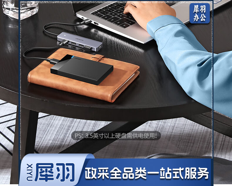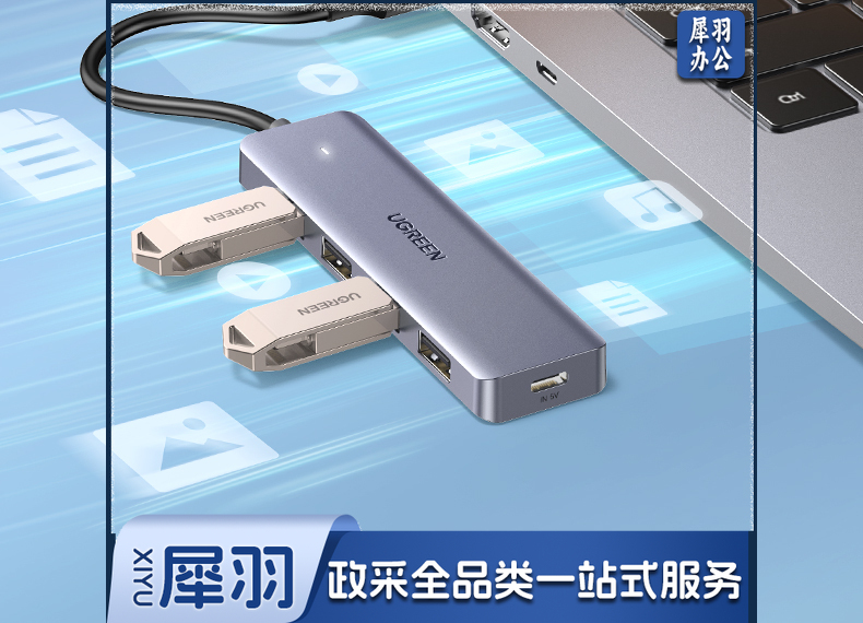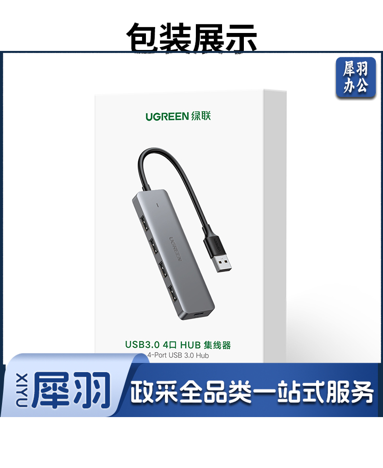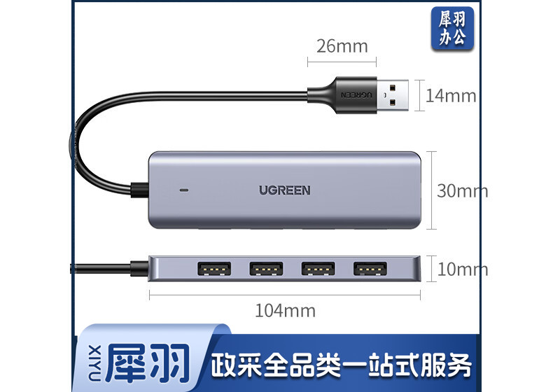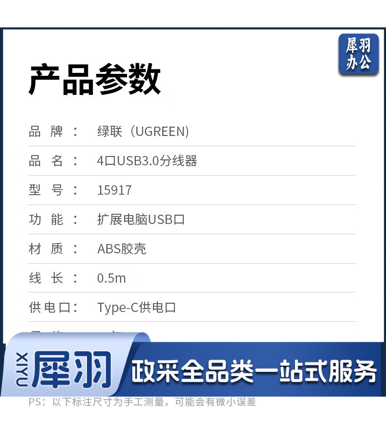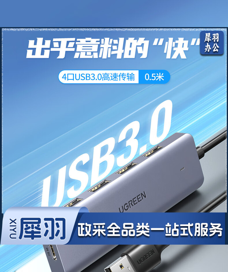 绿联 USB3.0分线器扩展坞 高速4口集线器HUB拓展坞 笔记本电脑一拖多接口转换器转接头延长线带供电口 0.5米