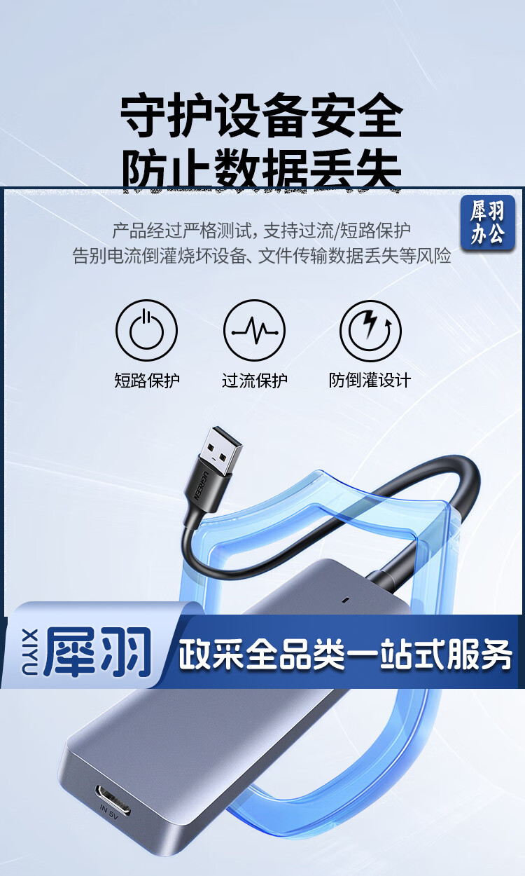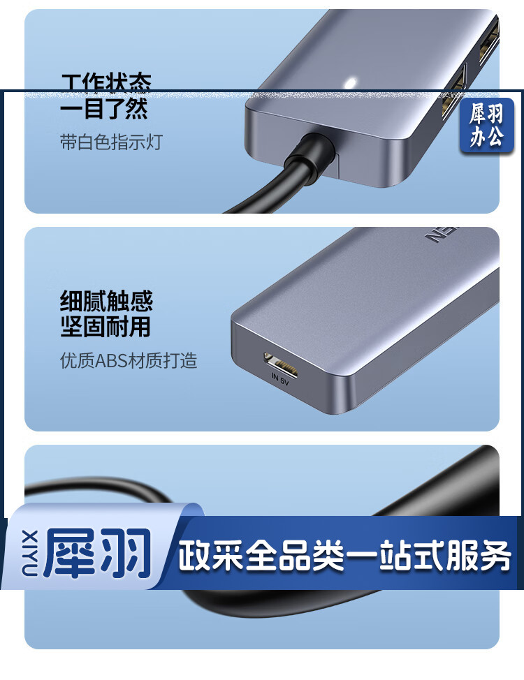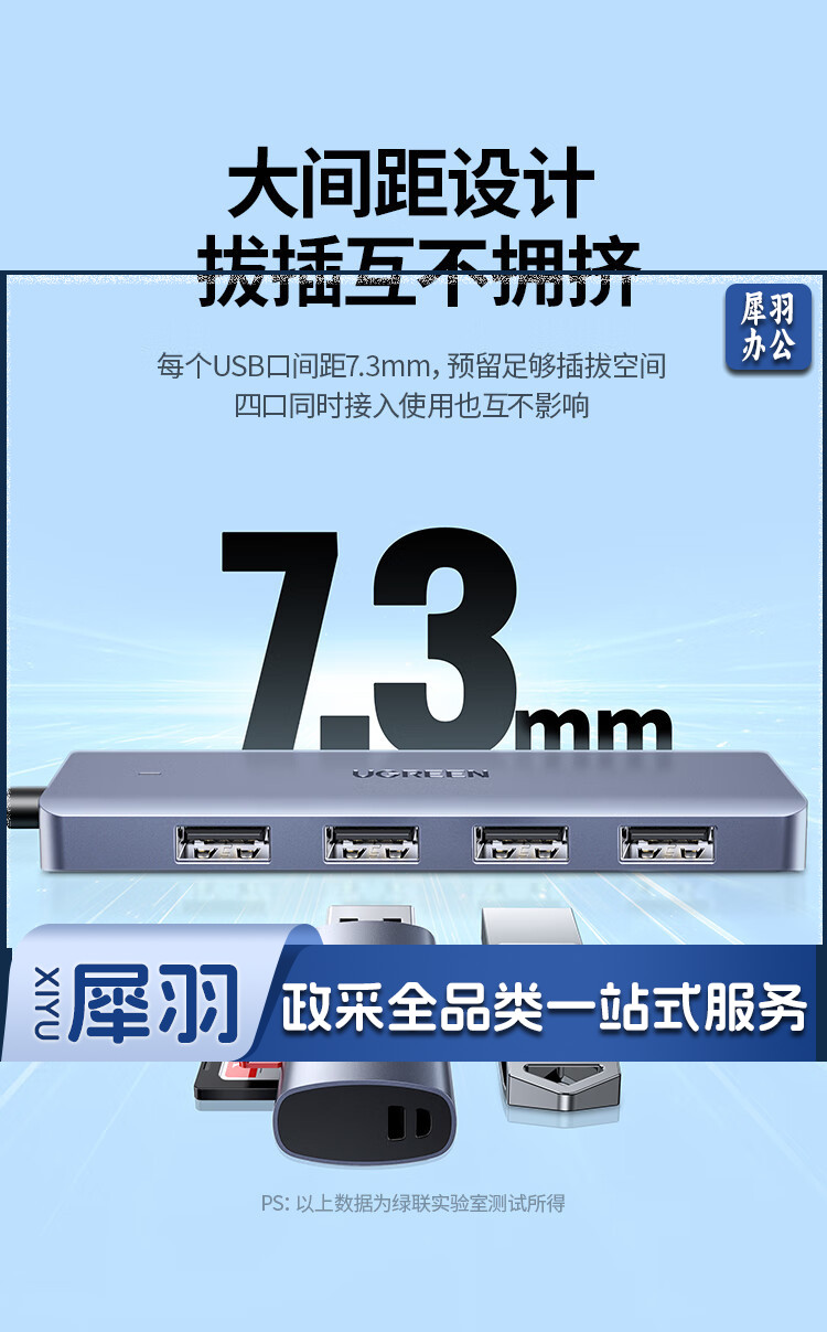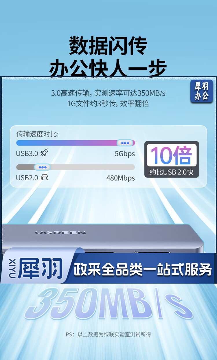 绿联 USB3.0分线器扩展坞 高速4口集线器HUB拓展坞 笔记本电脑一拖多接口转换器转接头延长线带供电口 0.5米