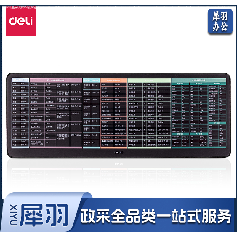 得力鼠标垫800*300*3mm黑色 word excel PPT PS CAD 办公快捷键鼠标垫(块)83004