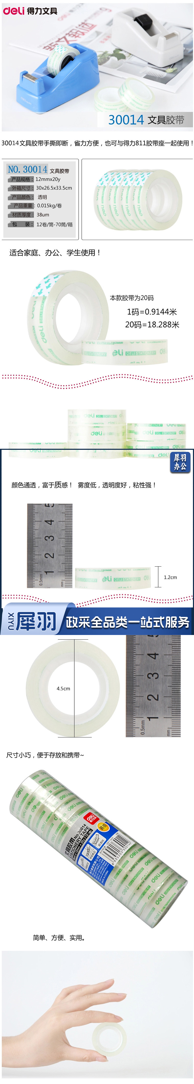 得力 30014 文具胶带 12mm*20y 透明色 (100卷起售)230130130159