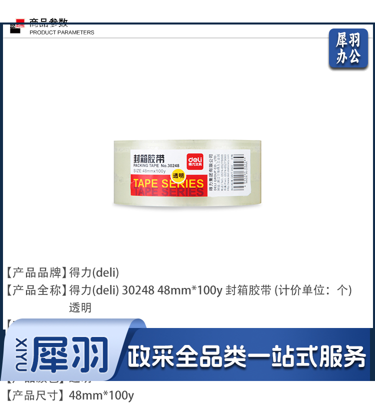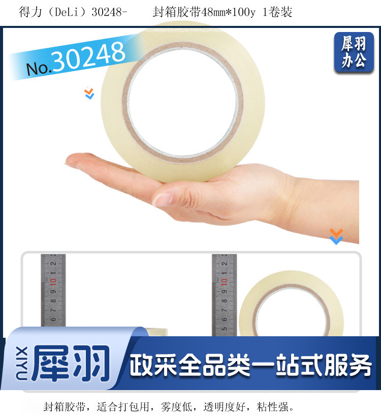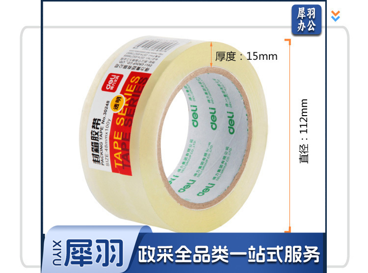得力/deli 30248 超透封箱胶带 48mm*100y 单卷装 透明 单位:卷