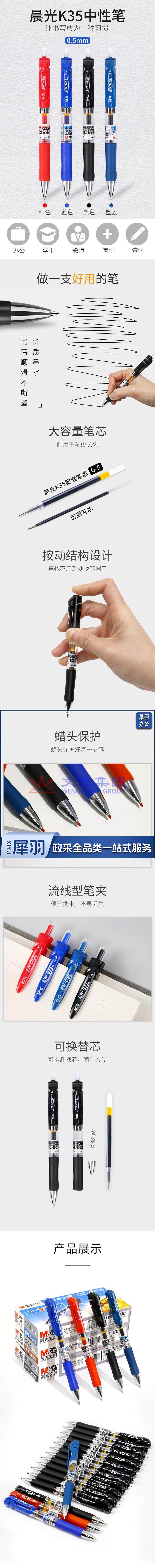 晨光K35蓝色0.5mm中性笔按动签字笔 12支/盒K-35