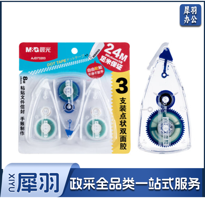 晨光(M&G)文具经典款点点胶 8m*6mm点状双面胶 创意手工双面胶带 便携快涂可擦除 3支装AJD73203