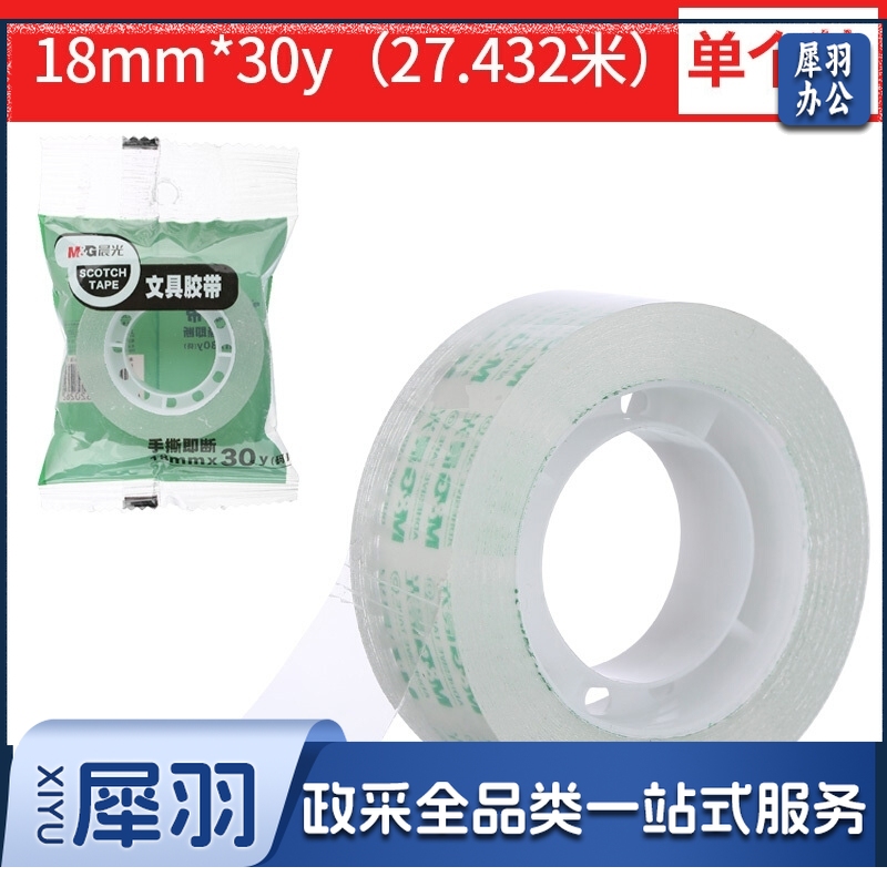 晨光(M&G)文具透明小胶带 学生易撕手工胶布 便携式修补胶带18mm*30y(27.42米/卷) 单卷装AJDN7664