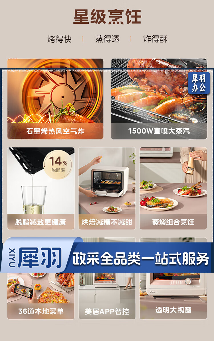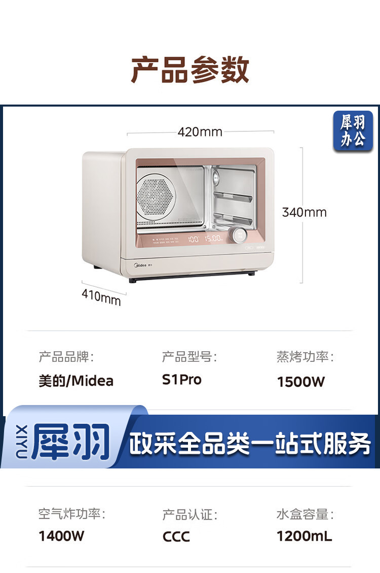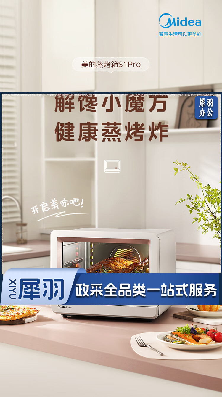 美的(Midea)家用多功能蒸烤箱蒸烤炸一体机S1pro 石墨烯烤管/健康空气炸/高温锁鲜蒸/易清洁