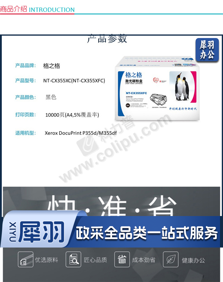 格之格/G&G NT-CX355FXC/CT201939 墨粉 10000页 (黑色)适用于Xerox DocuPrint P355d/M355df(单位:盒)