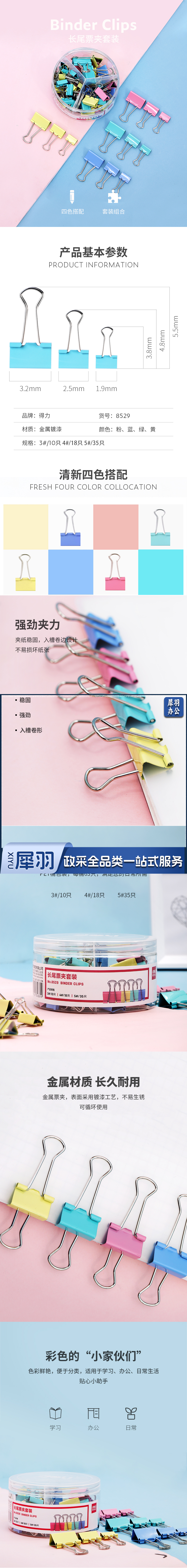 得力/deli 8529 长尾票夹套装(单位:套) 混色
