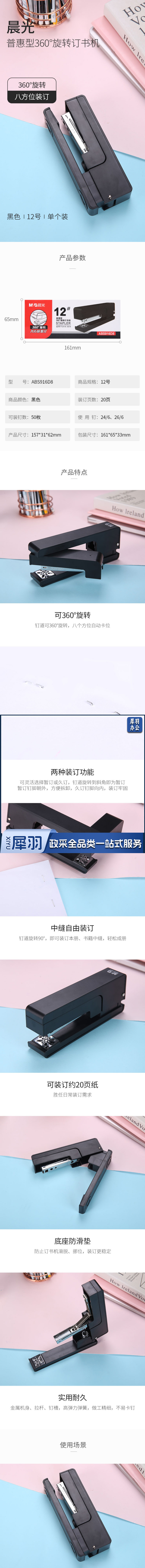晨光ABS916D8 普惠型360°旋转12号订书机 黑色