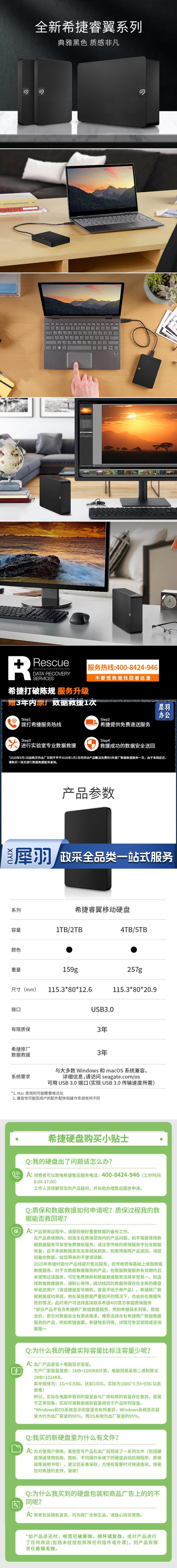 希捷(Seagate)移动硬盘5TB/5T USB3.0 睿翼 2.5英寸 STKM5000400 黑色便携商务 jcyd-202110111522