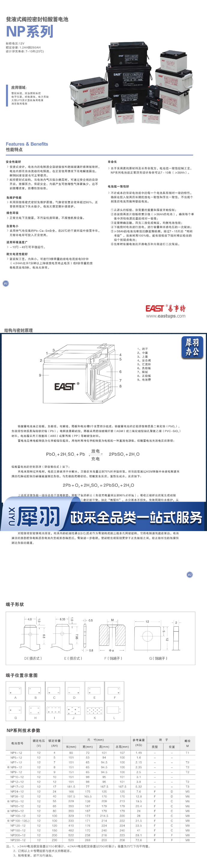 EAST易事特铅酸免维护蓄电池12V65AH (NP65-12)(单位:个)
