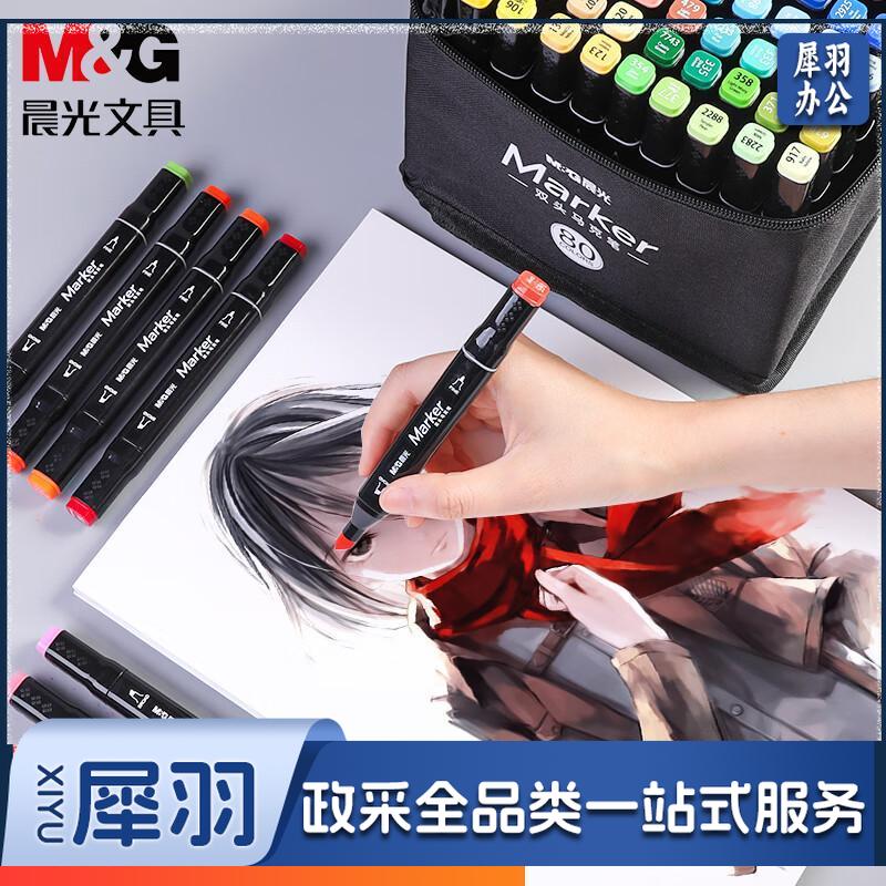晨光(M&G)文具60色双头酒精性速干马克笔 袋装学生款 纤维笔头 绘画涂鸦工具 60色【APMV1415马克笔/60色】默认规格