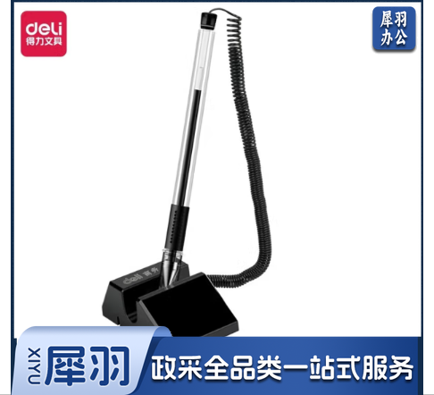 得力/deli 6791 0.5mm旋转台笔柜台桌面专用 可粘贴台式中性笔 黑 12支装