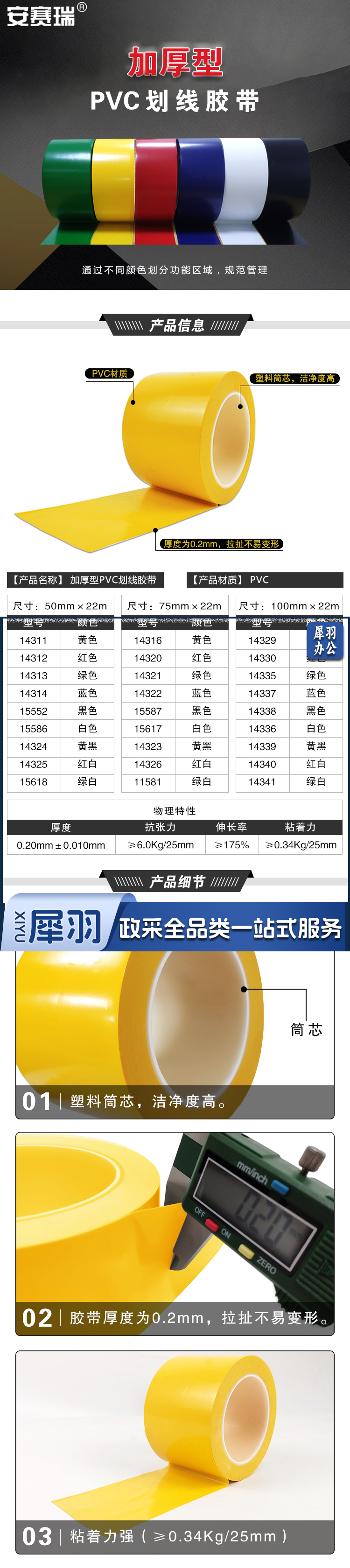 安赛瑞14340地板划线胶带红白100mm*22m(卷)