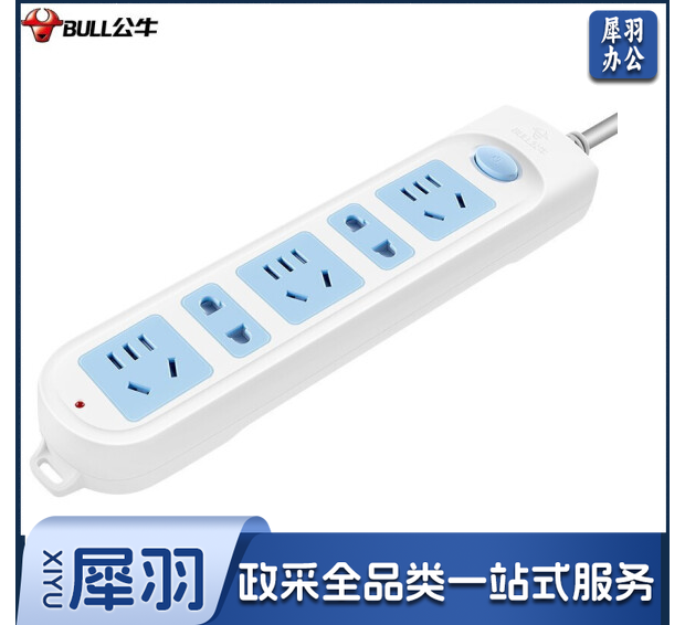 公牛(BULL)GN-608 插座/带儿童保护门 新国标/插线板/插排/排插 5位总控开关全长5米