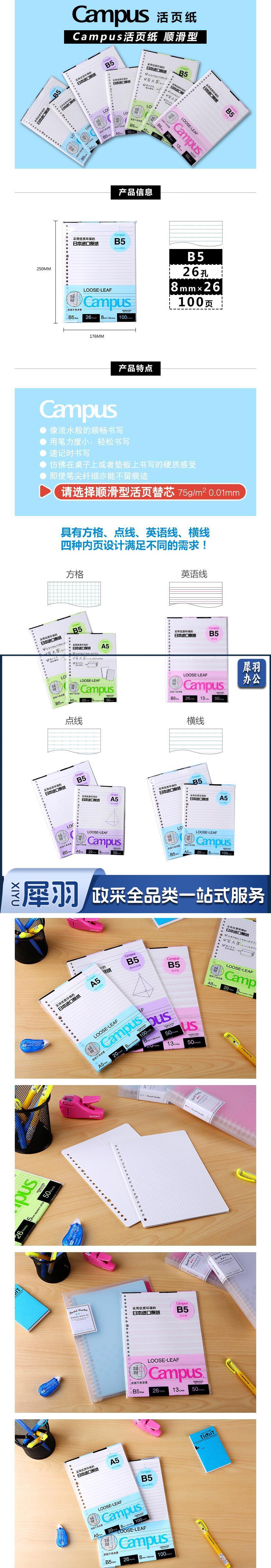 国誉 B5活页纸 活页本替芯 8mm横线26行 100张1本 WCN-CLL1110 货号:JC