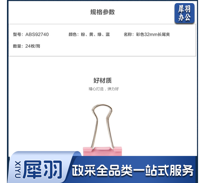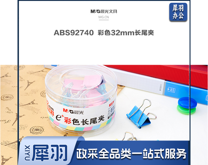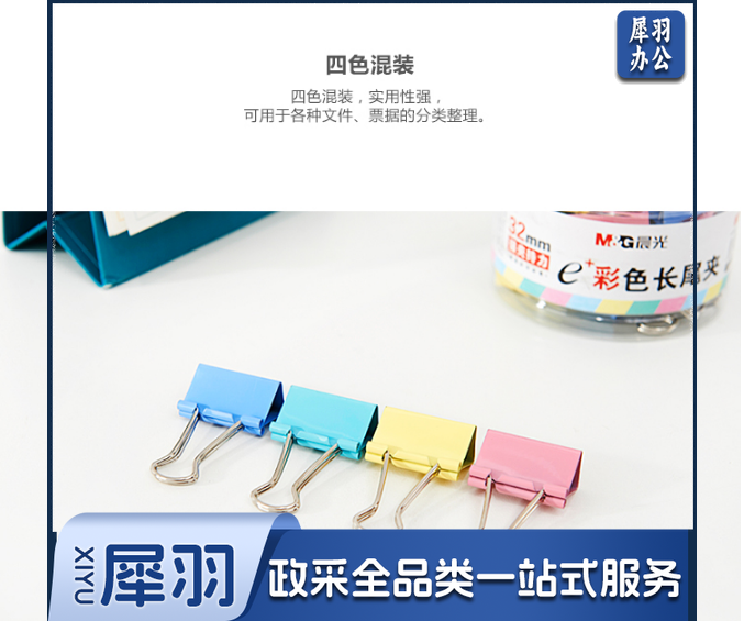 晨光 ABS92740 32mm彩色长尾夹 金属票据夹 Eplus系列办公燕尾夹 24只/罐