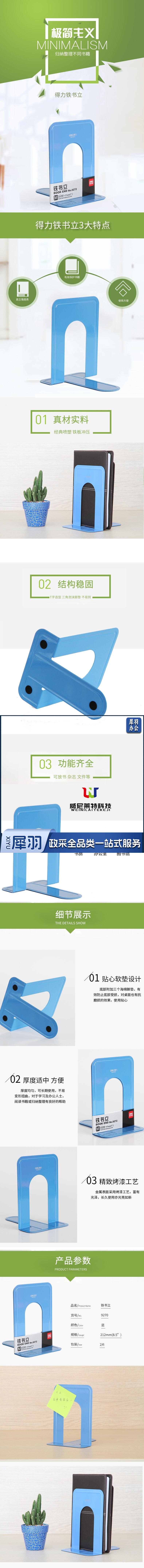 得力 9270 铁书立(蓝)(2片/付)
