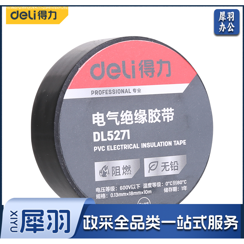 得力工具 型号 DL5271 电工胶布pvc阻燃绝缘胶带 防水耐高温加宽强粘黑色大卷 电气绝缘胶带 电工电线胶布 无铅密封线束阻燃耐磨 家用绝缘胶布 专业级电气绝缘胶带(黑) 0.13mm×18mm×10m