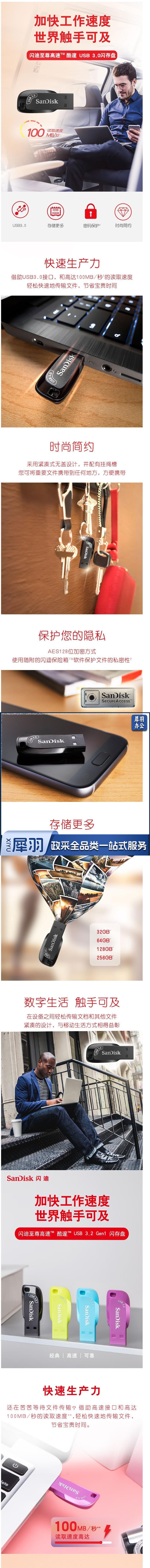 闪迪(SanDisk) U盘 CZ410 酷邃 高速USB3.0读取速度100MB/s 内置加密软件 时尚设计 学生优盘 商务办公 32GB 黑色