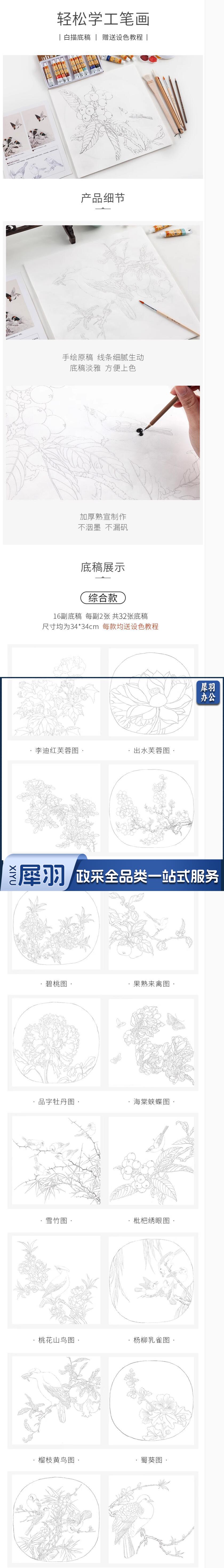 工笔画底稿白描花鸟 综合款底稿32张 货号:JC