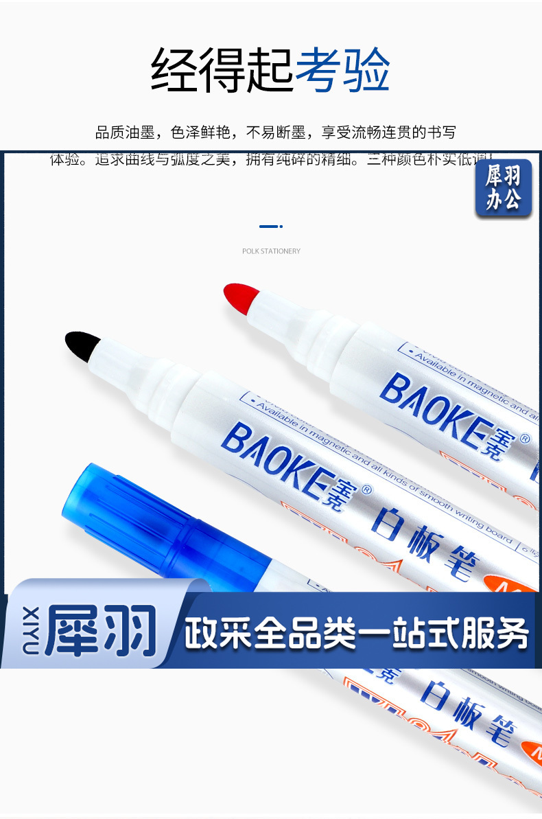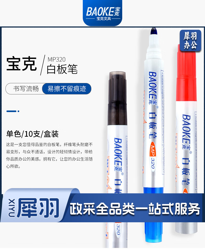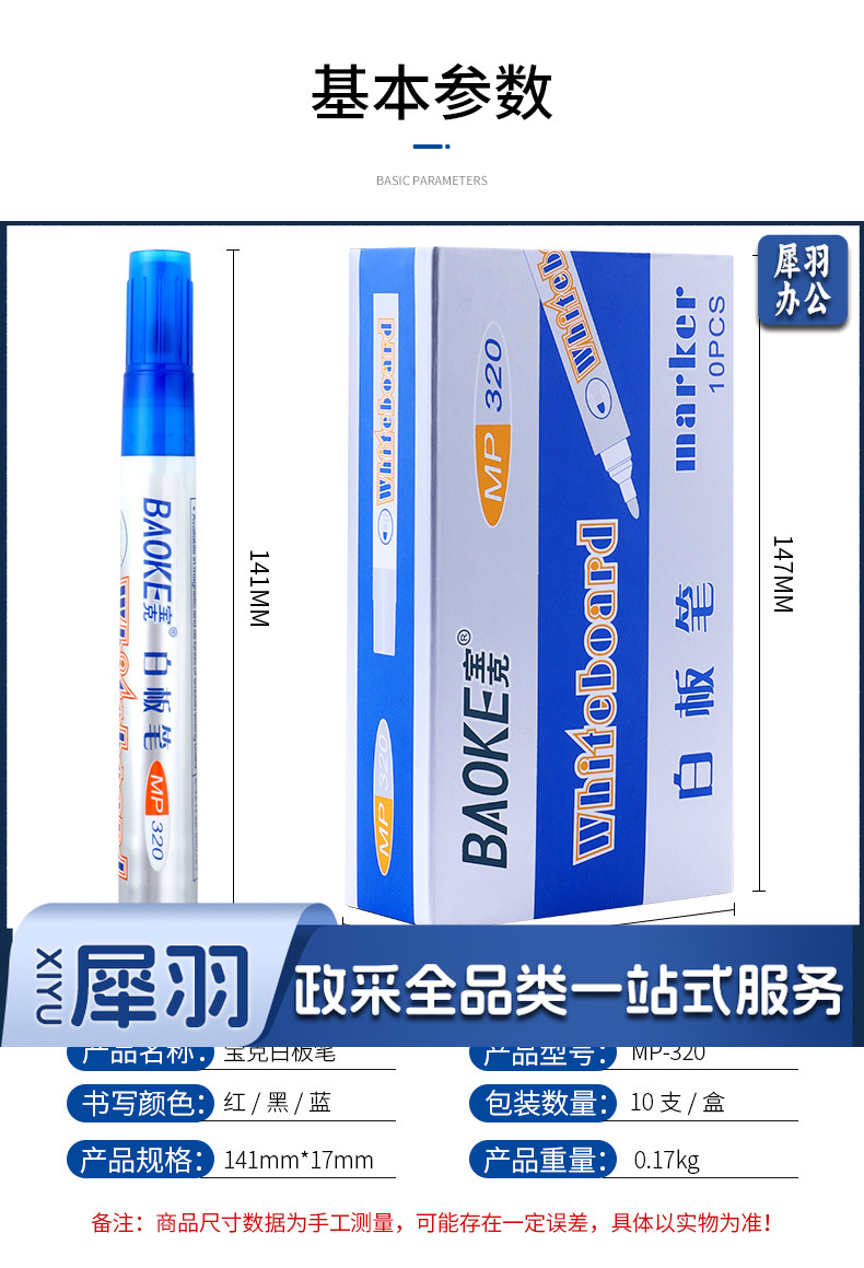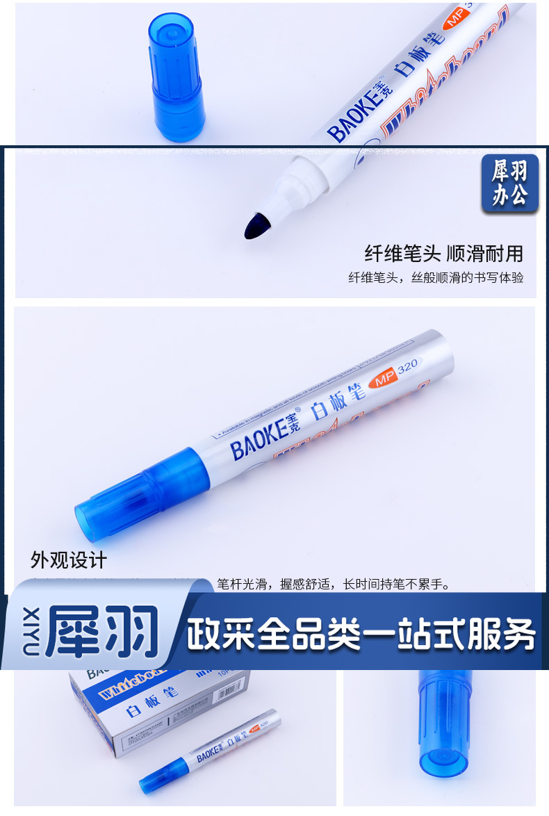 宝克(BAOKE)MP320 办公会议教学白板笔可擦易擦 蓝色10支/盒
