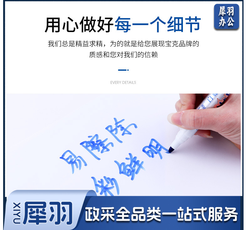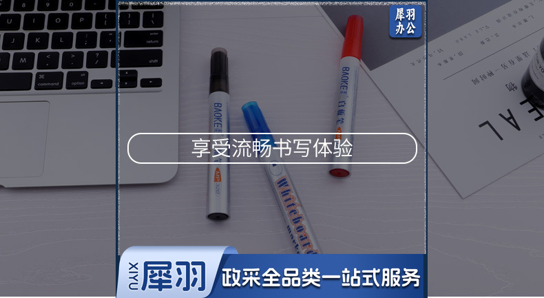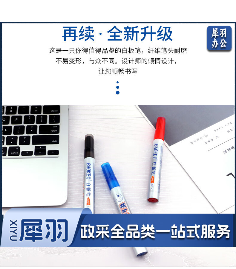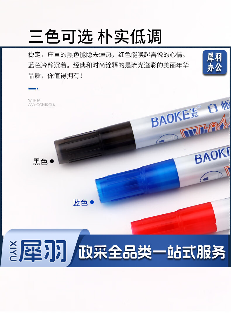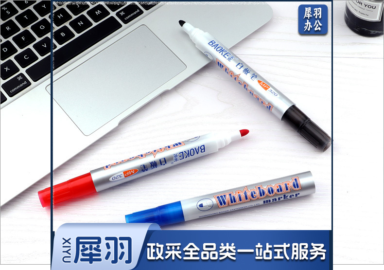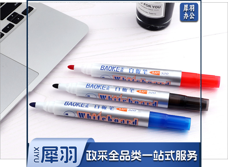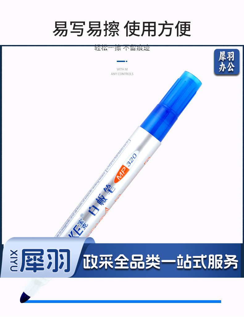 宝克(BAOKE)MP320 办公会议教学白板笔可擦易擦 蓝色10支/盒
