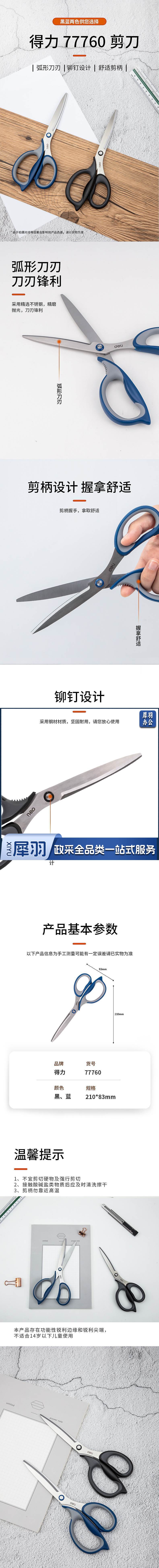 得力(deli)210mm人机造型办公剪刀 手工剪纸刀 大号生活家用剪子 黑色77760