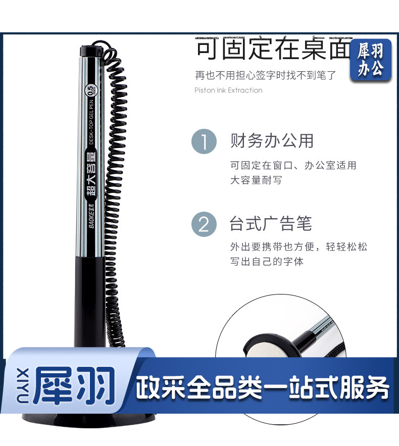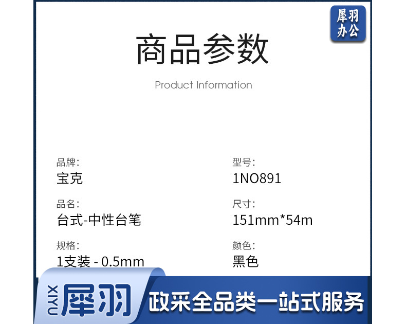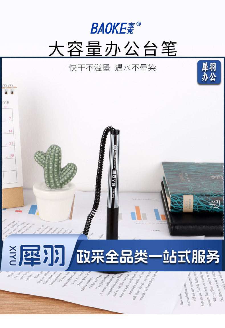 宝克(BAOKE)1NO891 0.5mm黑色大容量中性台笔办公台笔签字笔 1支/卡