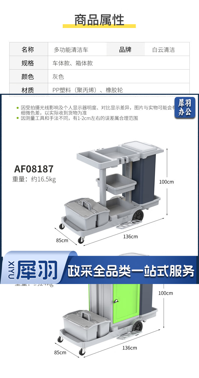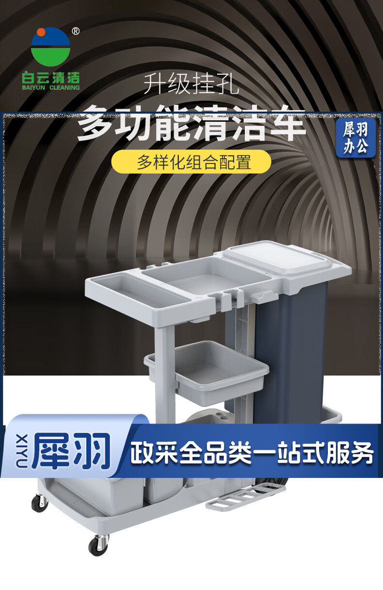 白云清洁 AF08187 酒店客房多功能手推车布草车保洁工作车清洁车服务车 136*85*100CM