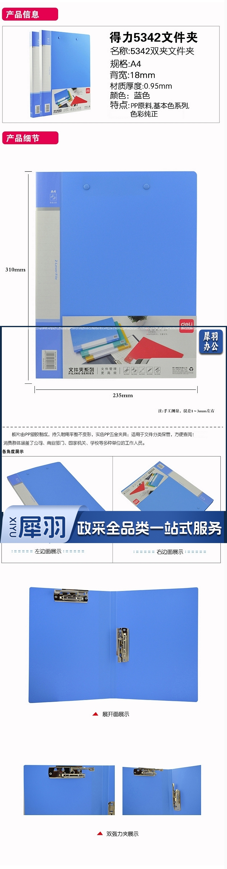 得力 5342 文件夹235x315x18mm (单位:只) 蓝