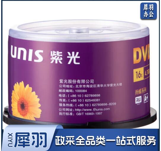 紫光(UNIS)DVD+R 刻录光盘 空白盘 碟片 雨蝶系列 4.7G 16速 50片装