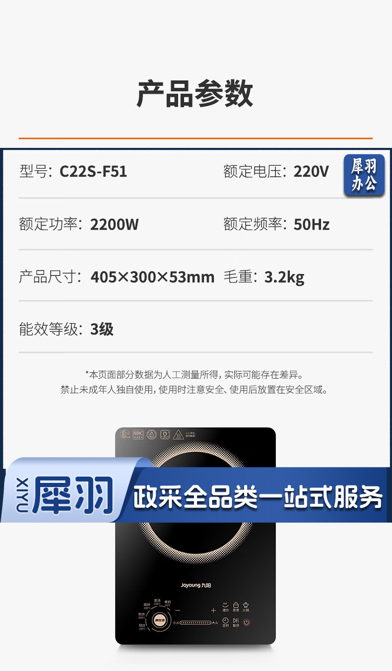 九阳(Joyoung)电磁炉电陶炉2200W大功率家用触控按键耐用面板十档火力纤薄定时功能电磁灶火锅炉C22S-F51
