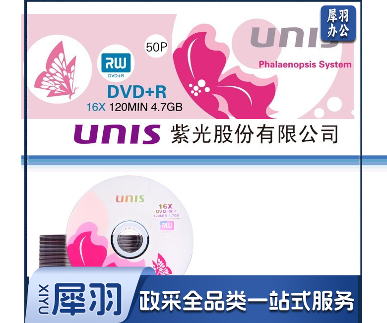 紫光(UNIS) DVD光盘 dvd-r刻录光盘光碟 16速4.7G 1盒50片