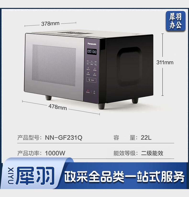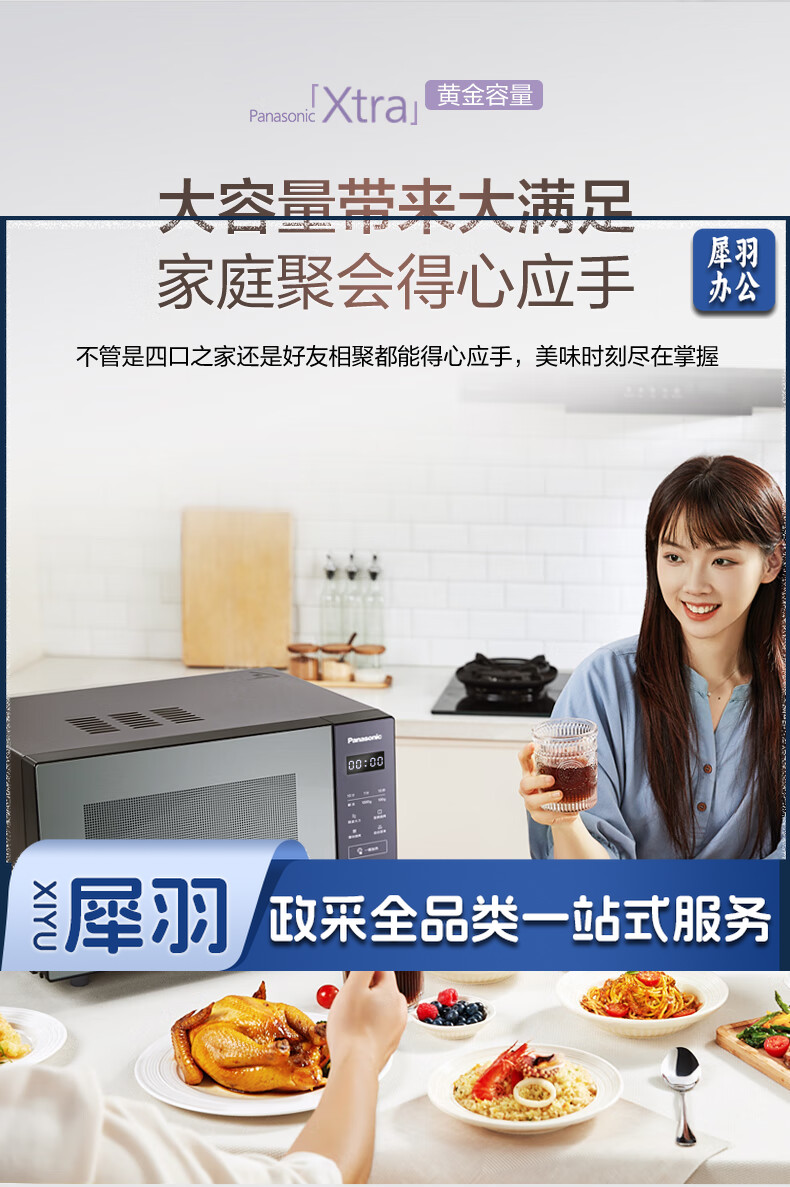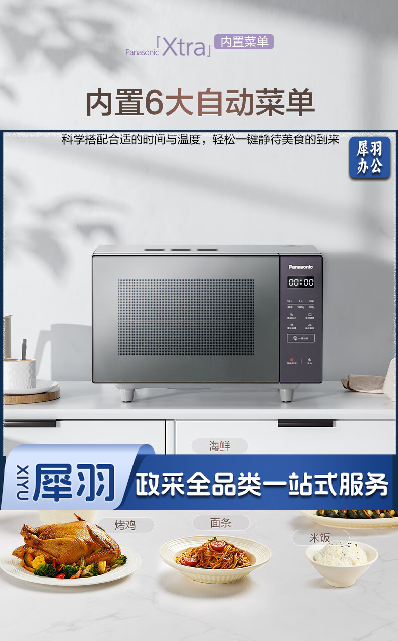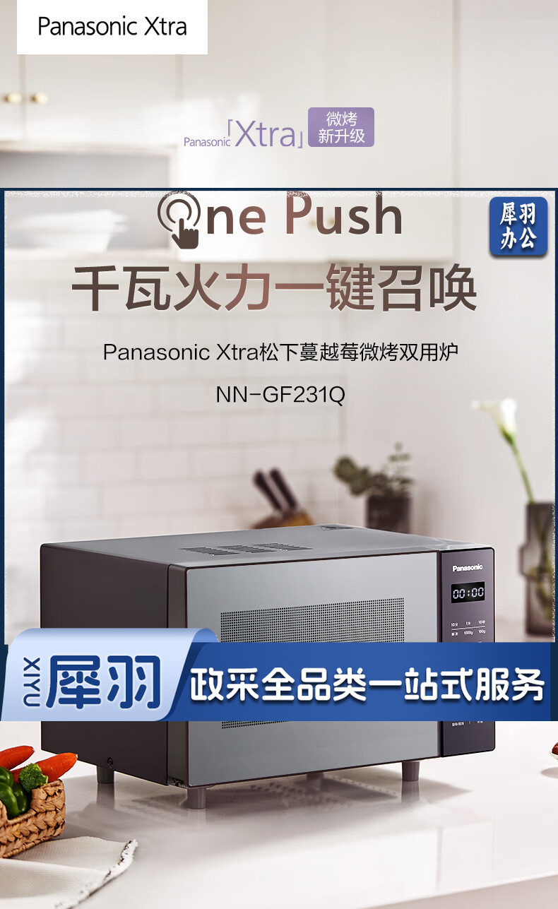 松下(Panasonic)Xtra蔓越莓微波炉烤箱一体机 家用多功能平板式电烤箱 一键感温加热6档变频火力 22升大容量GF231Q