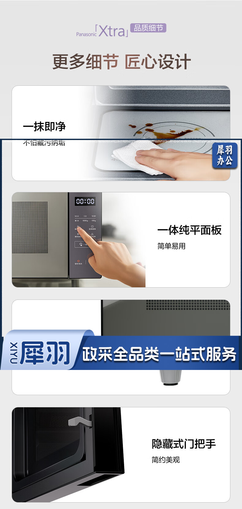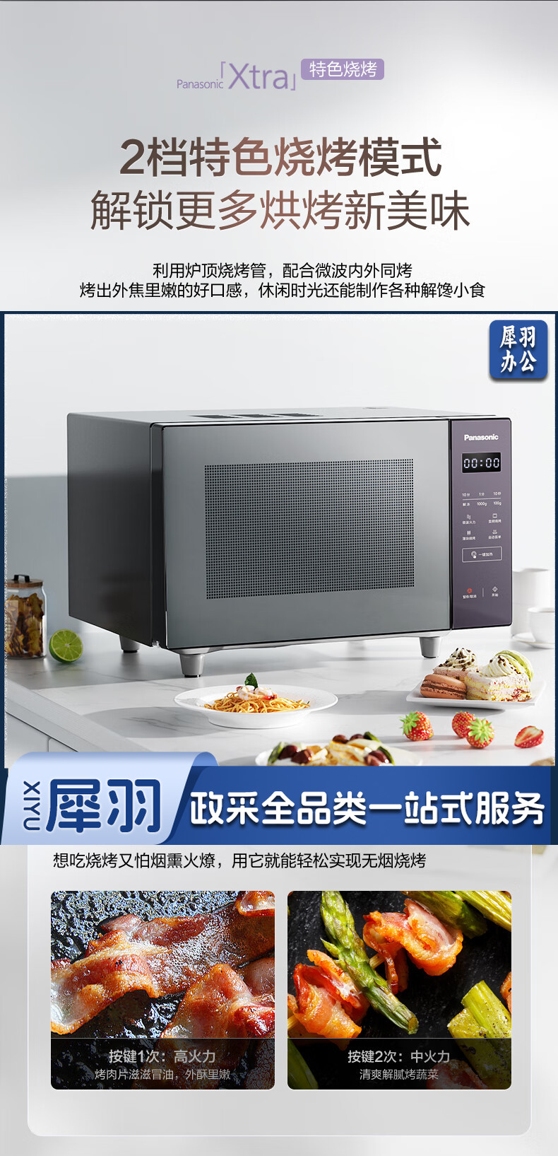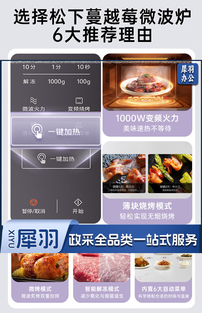 松下(Panasonic)Xtra蔓越莓微波炉烤箱一体机 家用多功能平板式电烤箱 一键感温加热6档变频火力 22升大容量GF231Q