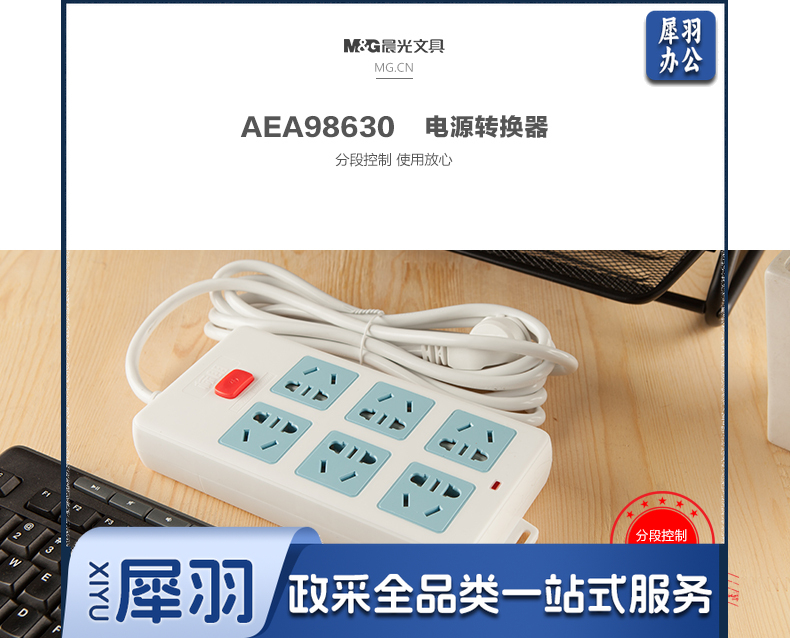 晨光(M&G)AEA98630 标朗延长线插座 3米线双排6孔电源插座转换器 多功能家用宿舍接线板