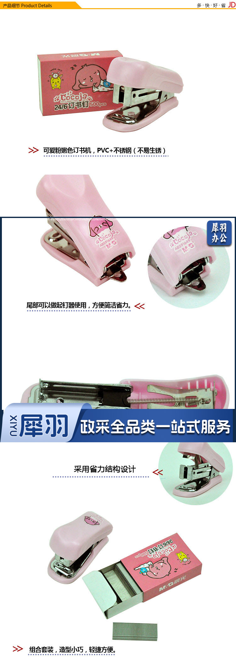 晨光(M&G)文具12#订书机 小型迷你便携 学生订书器组合套装(订书器+订书钉)粉色ABS91649