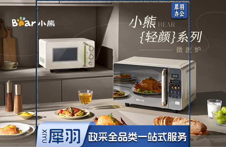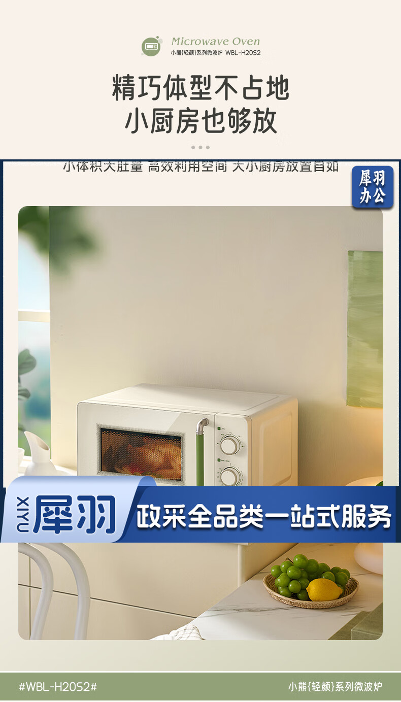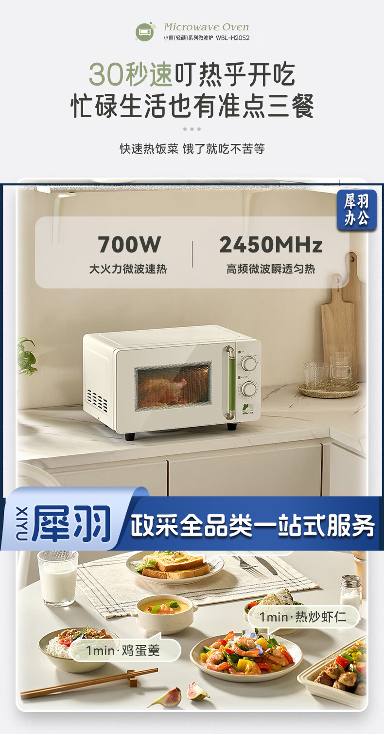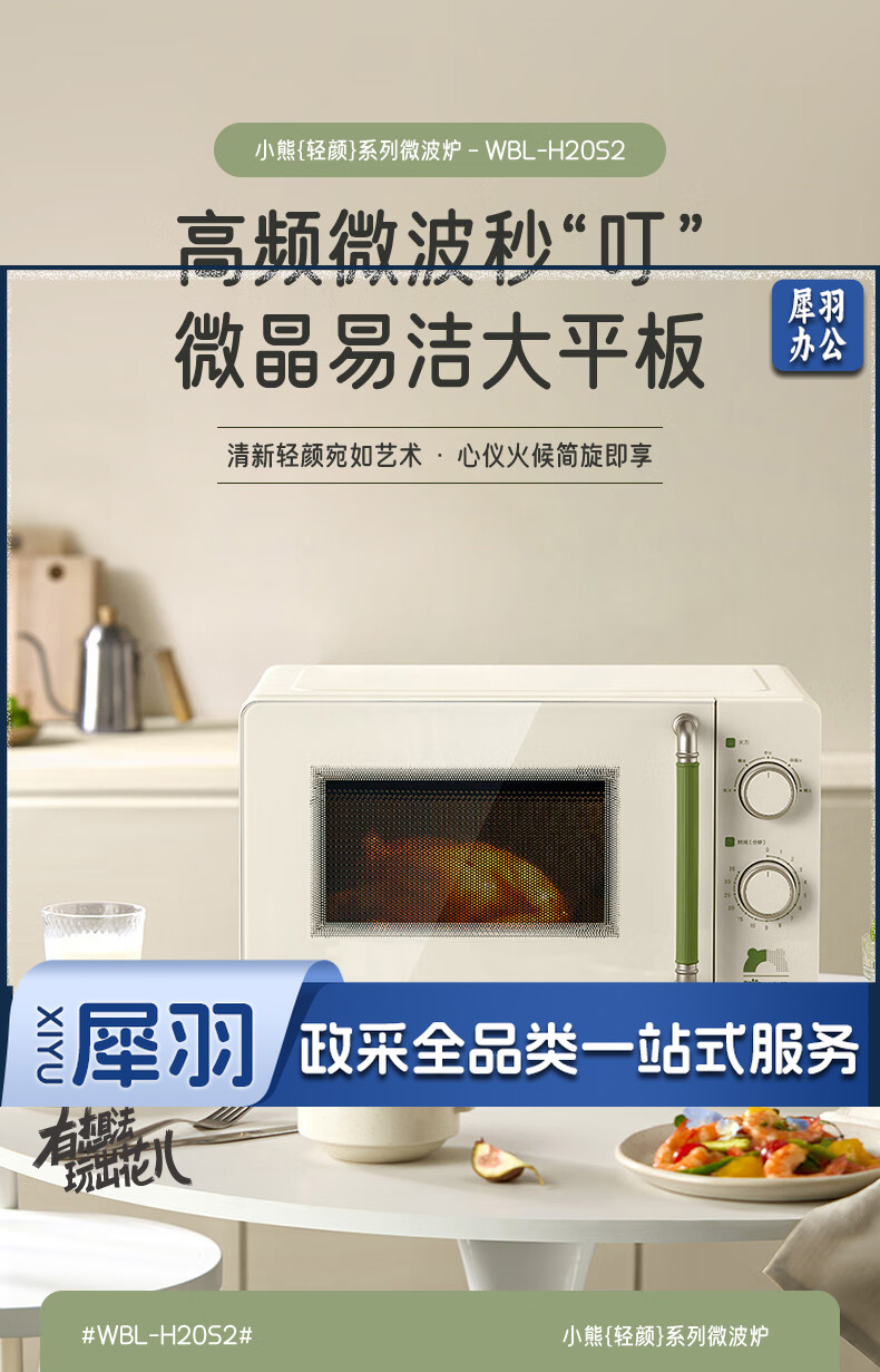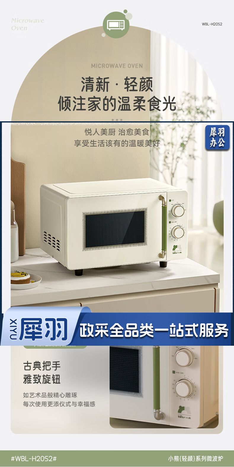 小熊(Bear)轻颜微波炉烤箱一体机 小型家用复古旋钮智能平板加热多功能高频五档火力调控WBL-H20S2
