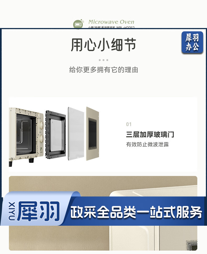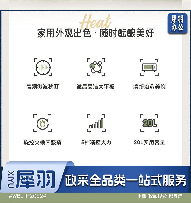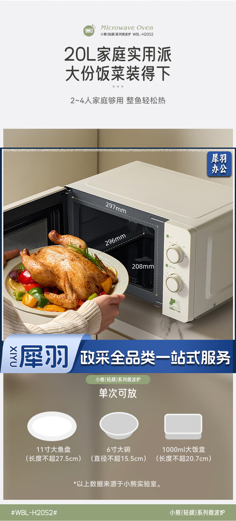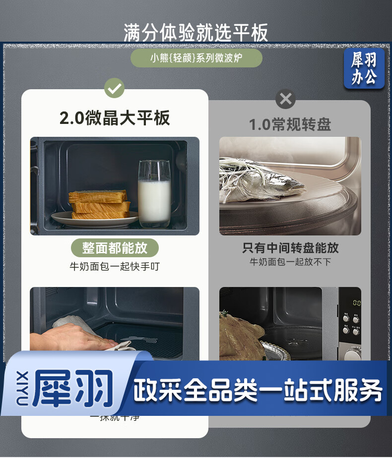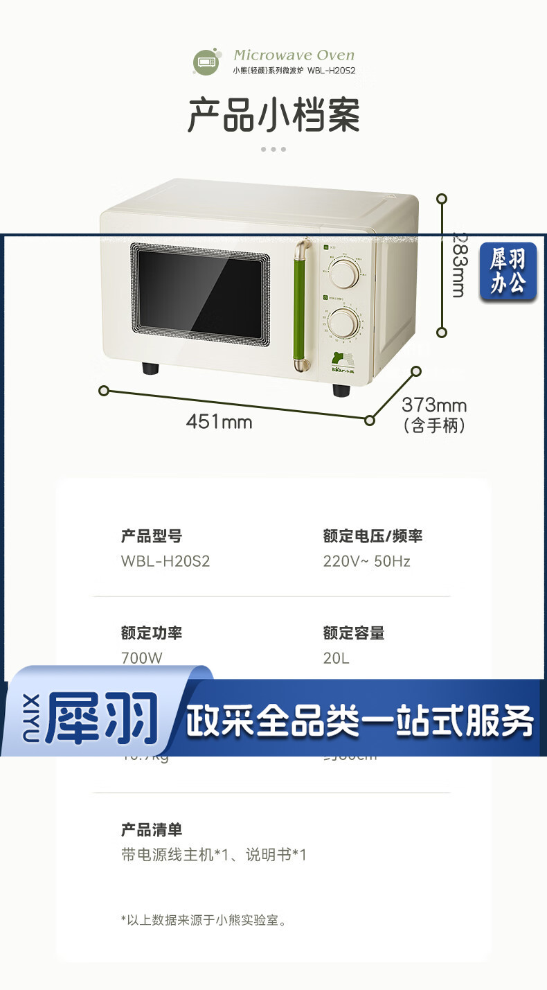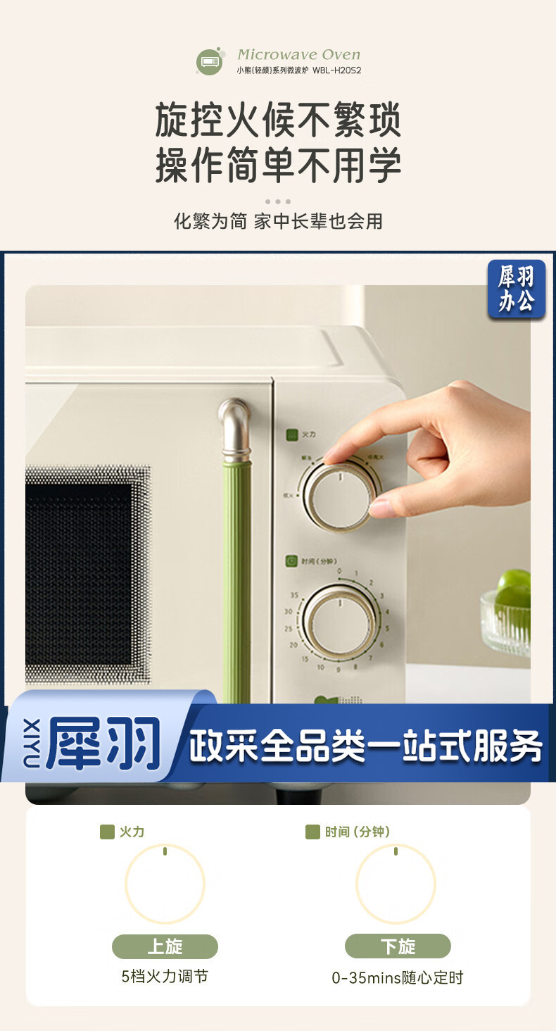 小熊(Bear)轻颜微波炉烤箱一体机 小型家用复古旋钮智能平板加热多功能高频五档火力调控WBL-H20S2