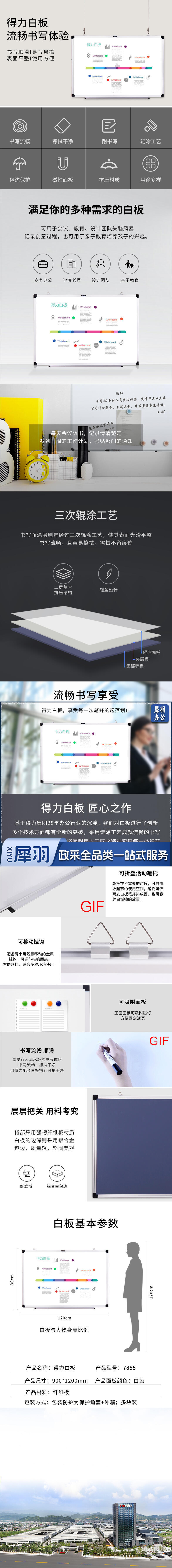 得力7855白板1200*900(白)(块)GDSM