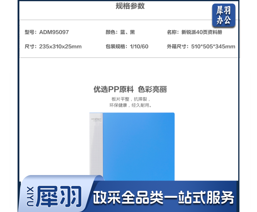晨光(M&G)ADM95097 40页新锐派资料册文件夹 黑色(可当天配送发货)