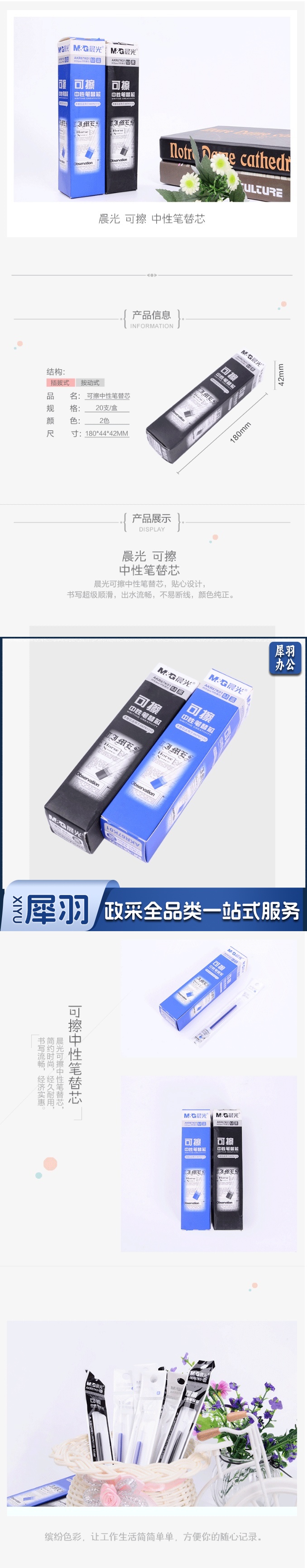 晨光(M&G) AKR67K01 可擦中性替芯 0.5mm 黑色 20支/盒 整盒起订