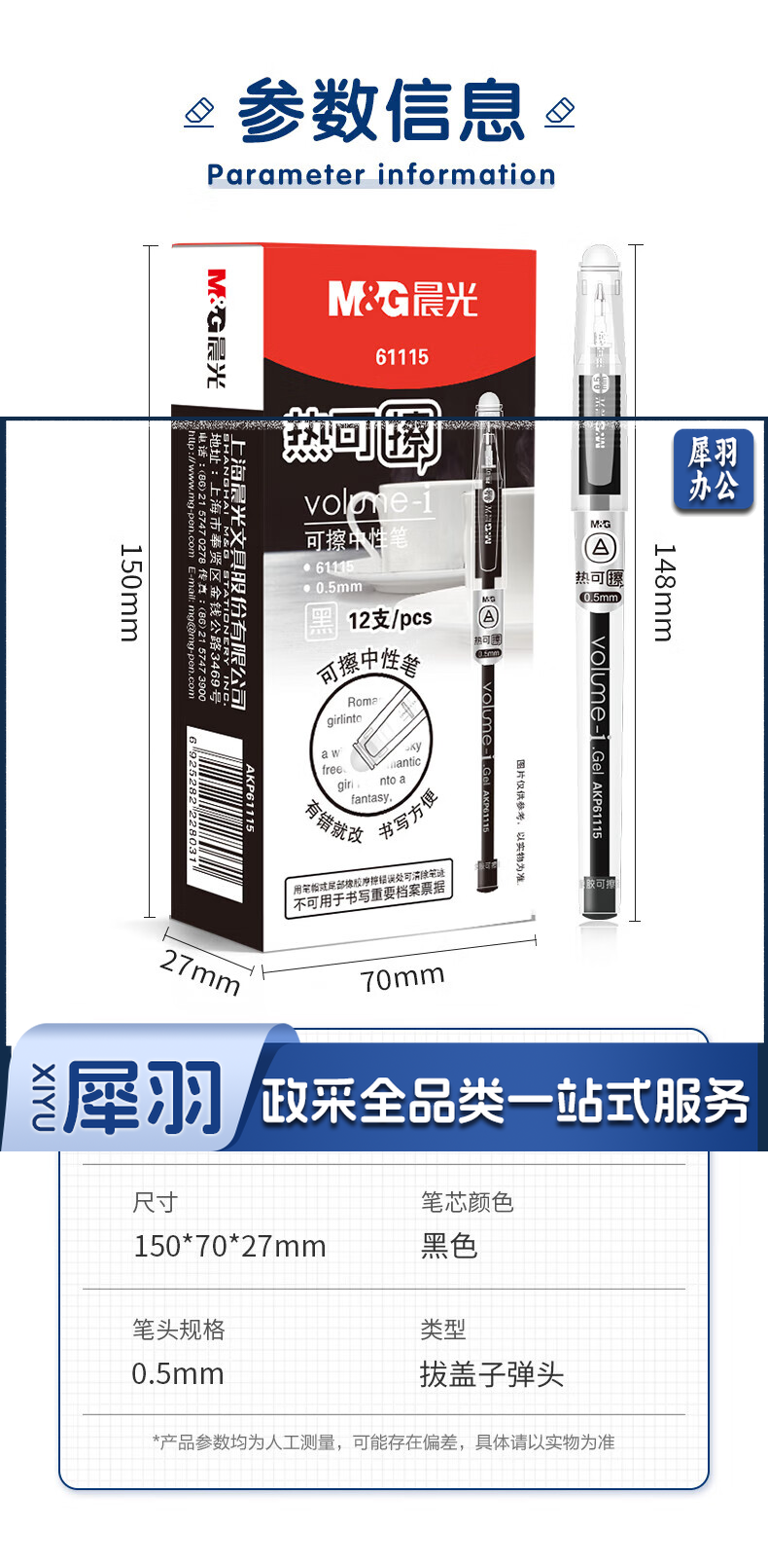 晨光 热可擦中性笔 AKP61115A 12支/盒 黑色