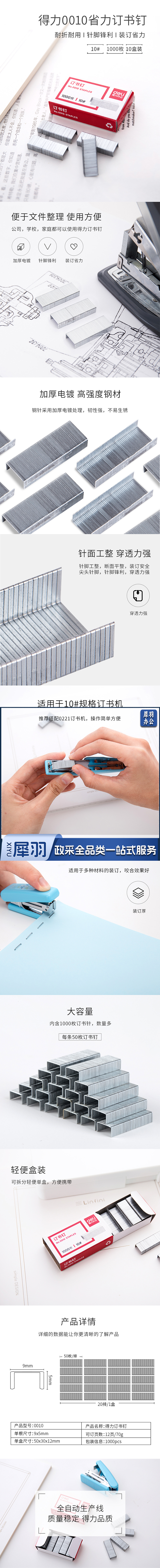 得力10#订书钉(1000枚/盒) (10盒/包) 0010